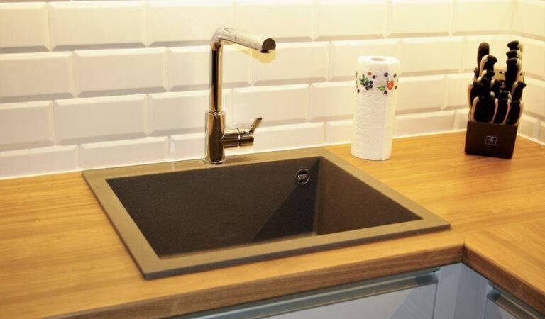 Popielata kuchnia z blatem laminowanym w kolorze dębu, która świetnie komponuje się z dębowym parkietem. Taka kuchnia łączy ze sobą funkcjonalność i prostotę, skromność i wygodę.